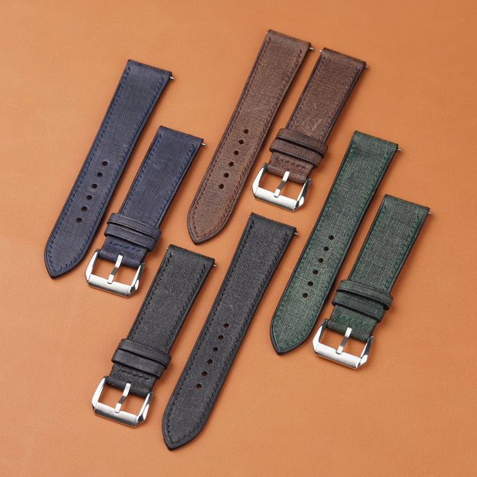 Babele leather is a premium Italian calfskin from Tempesti Tannery, vegetable-tanned and pressed with a unique linen-like texture. Soft, flexible, and lightweight, it develops a rich patina over time. Perfect for casual yet refined watch straps, Babele adds character and effortless style to your timepiece.