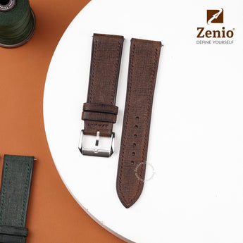 Each strap undergoes meticulous saddle stitching by the skilled hands of Zenio artisans. Unlike machine-produced lock stitches, our method ensures unparalleled durability, with two independent stitches forming a secure knot at every point. We exclusively use 0.35mm linen thread, chosen for its delicate yet robust weave, enhancing the natural beauty of our craftsmanship.