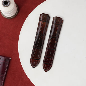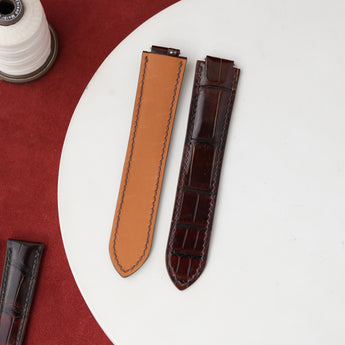 Glossy Chesnut Brown Ostrich Strap For Cartier Ballon Bleu - New Clasp