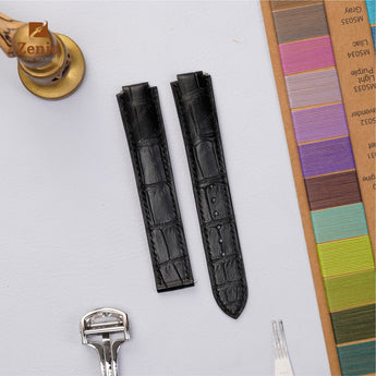 Matte Black Aligator Strap For Cartier Ballon Bleu - New Clasp