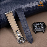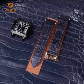 Available Colours: Matte Navy Aligator Strap For Cartier Santos - Classic clasp