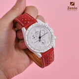 The crafting process of Rally leather straps involves precise cutting, perforating the signature air holes, and hand-stitching for durability. High-quality leather is selected for flexibility and comfort. Each strap undergoes meticulous finishing to ensure a refined look, perfect for both sporty and stylish watch enthusiasts.