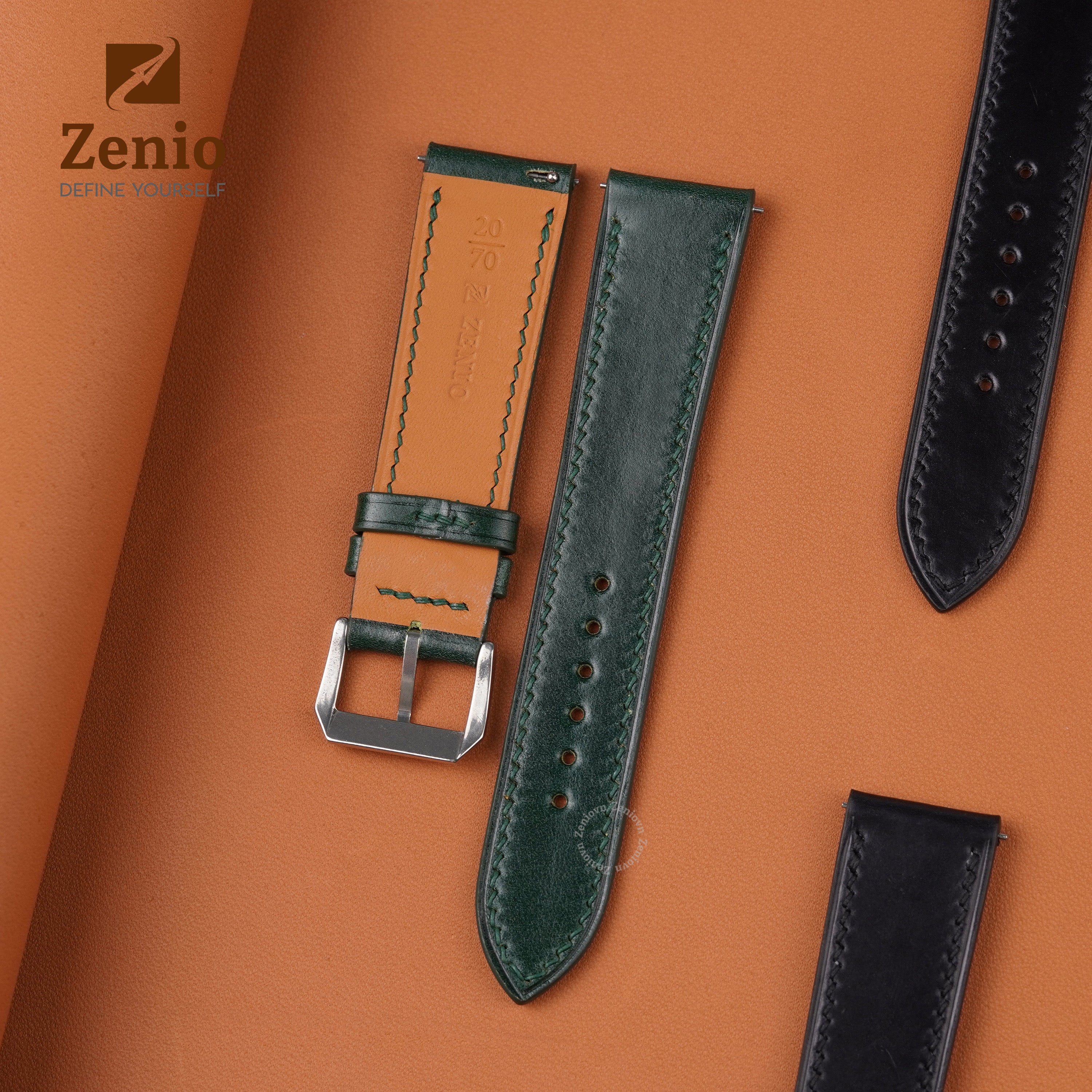 Each strap undergoes meticulous saddle stitching by the skilled hands of Zenio artisans. Unlike machine-produced lock stitches, our method ensures unparalleled durability, with two independent stitches forming a secure knot at every point. We exclusively use 0.35mm linen thread, chosen for its delicate yet robust weave, enhancing the natural beauty of our craftsmanship.