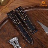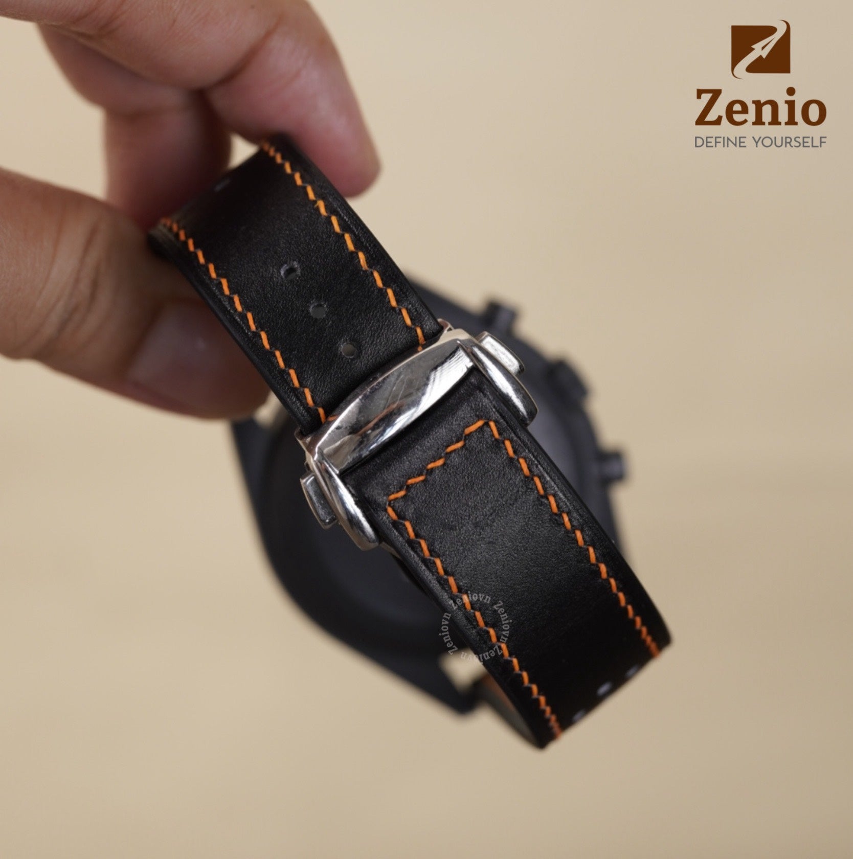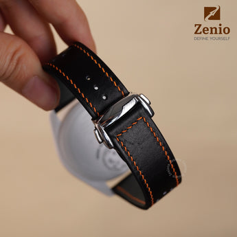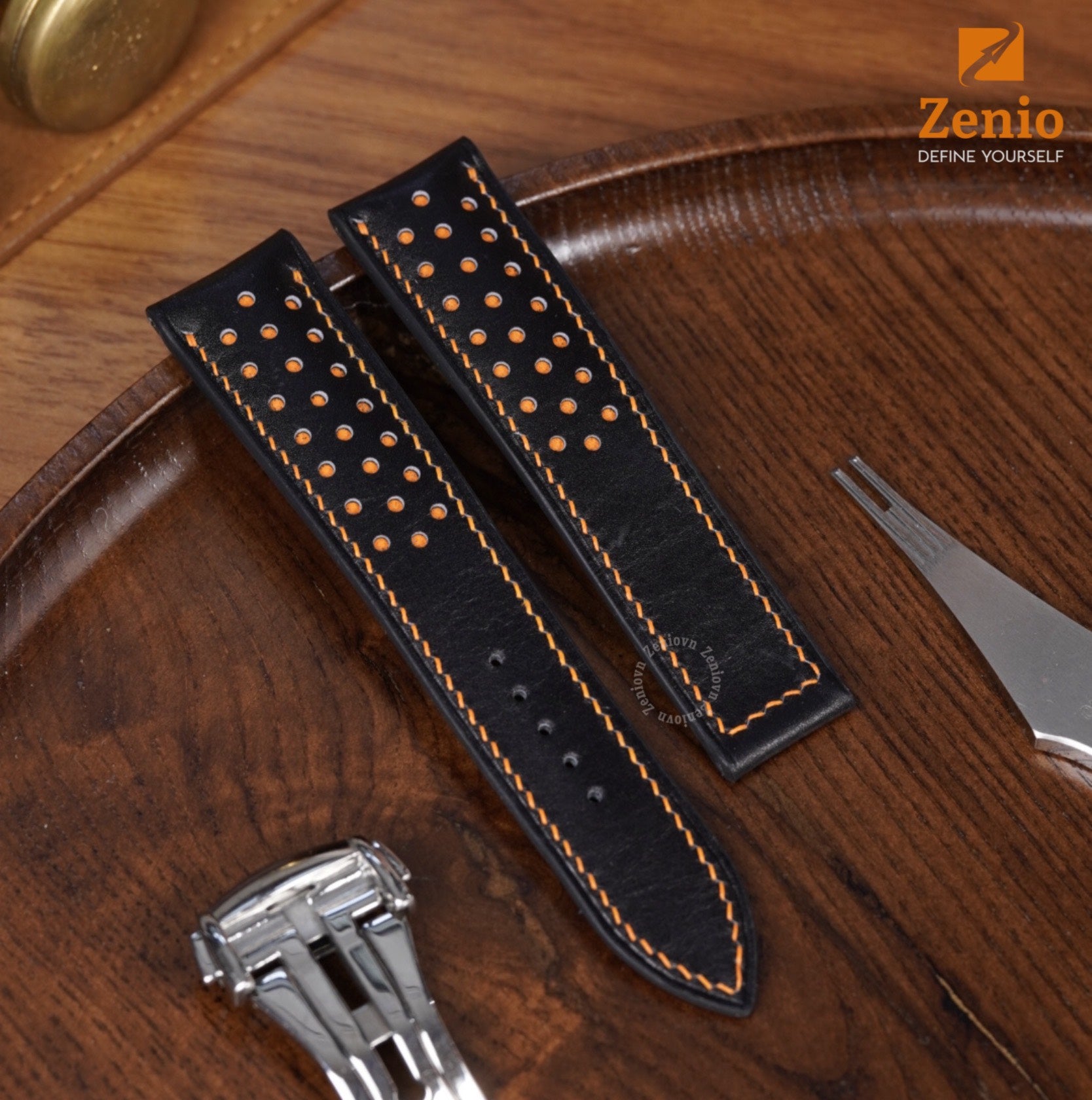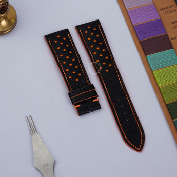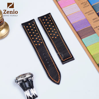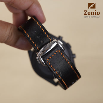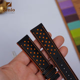 Black Alran Rally Strap Mix Orange Stiching With Foldover Clasp For Omega Swatch