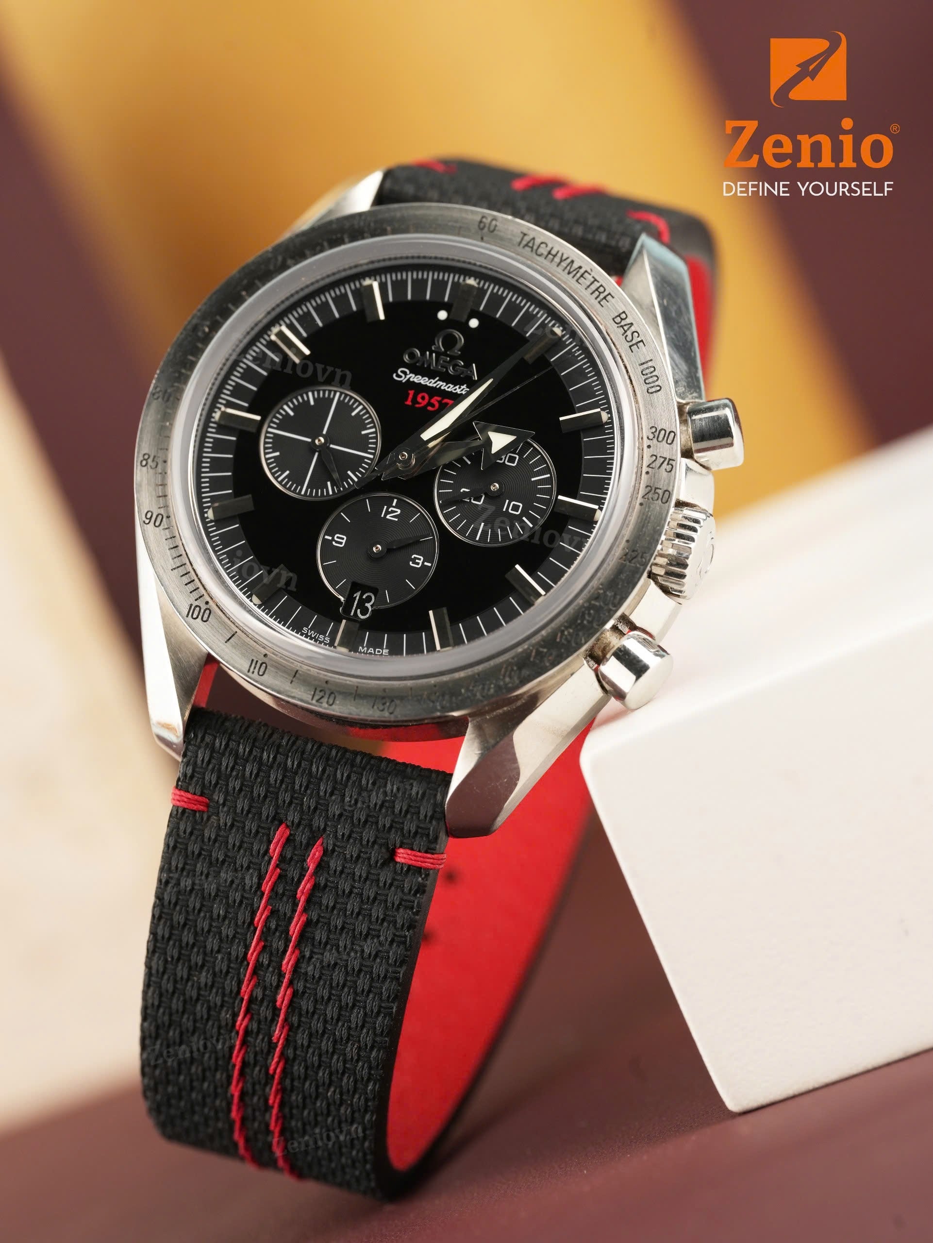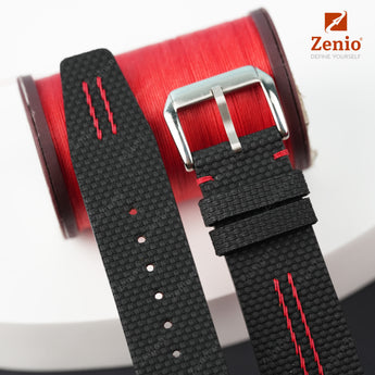 Give your watch a bold, performance-driven look with our Black Sailcloth Sport Strap featuring Red Stitching. The tough sailcloth exterior delivers a rugged and athletic appeal, while the vivid red stitching adds a powerful visual contrast that stands out with confidence.