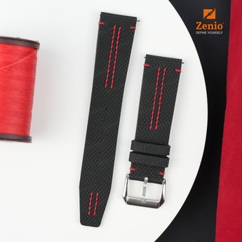 Inside, the strap is lined with premium red leather, matching the stitching to create a cohesive, dynamic design. Soft, flexible, and built for comfort, this strap is ideal for daily wear and sporty styling.