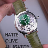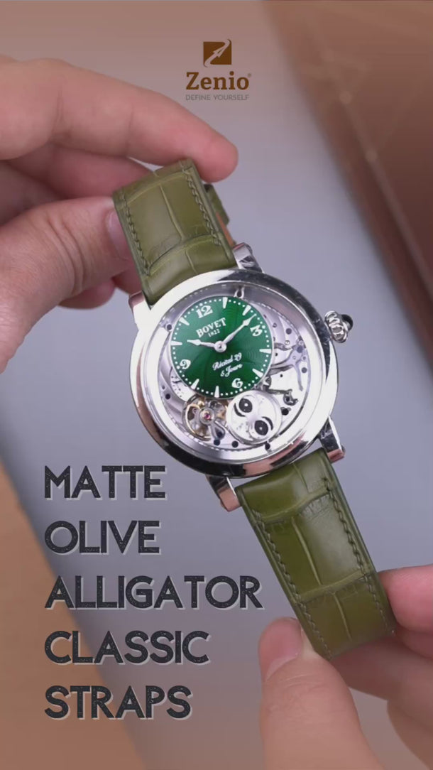 Upgrade your watch with a handcrafted Alligator leather strap. The genuine Alligator leather, known for its luxurious texture and rich appearance, adds an instant touch of class and sophistication. Unlike embossed patterns, our straps are meticulously crafted to provide unmatched quality and elegance. Perfect for any occasion, these straps transform your watch into a statement piece. Feel the difference with every wear and let your watch shine with timeless style.