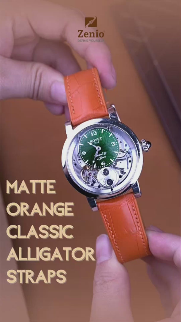Upgrade your watch with a handcrafted Alligator leather strap. The genuine Alligator leather, known for its luxurious texture and rich appearance, adds an instant touch of class and sophistication. Unlike embossed patterns, our straps are meticulously crafted to provide unmatched quality and elegance. Perfect for any occasion, these straps transform your watch into a statement piece. Feel the difference with every wear and let your watch shine with timeless style.